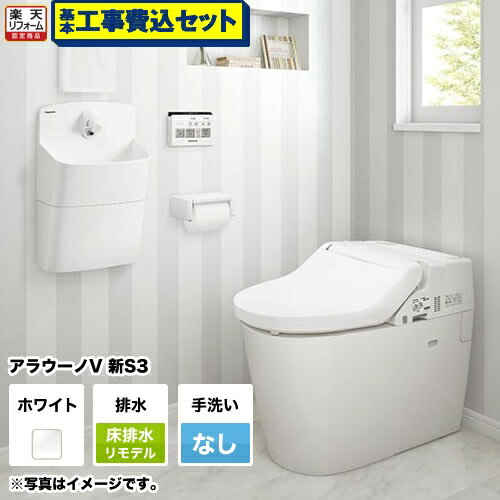 【楽天リフォーム認定商品】【工事費込セット(商品+基本工事)】[XCH3013RWS] パナソニック トイレ NEWアラウーノV 3Dツイスター水流 節水きれい 手洗なし 床排水リモデル排水芯305〜470mm V専用トワレ新S3 ホワイト 壁リモコン付属 【送料無料】 リフォームタイプ