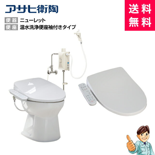 <商品のみ>アサヒ陶器製節水形簡易水洗便器ニューレット洋風便器+温水洗浄便座基本機能セット